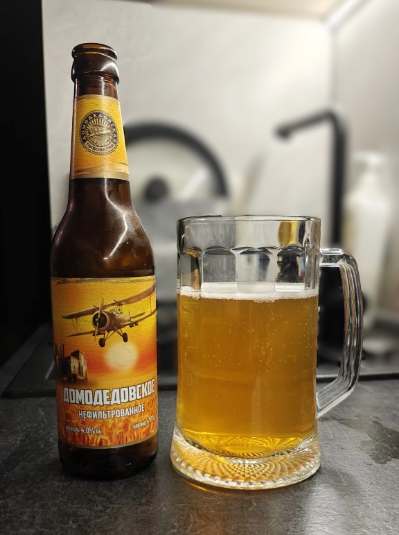 Всем привет! Зашел тут в магазин и не смог пройти мимо местного пива, поэтому сегодня на пробе "Домодедовское нефильтрованное" от Домодедовского пивоваренного завода, он же Домодедовская пивоварня. Довольно молодая компания, на рынке с 2018 года, а с 2020-го года разделилась на две независимых пивоварни. Домодедовская пивоварня специализируется на линейке светлых лагеров, пшеничных сортов и европейской классике. Вторая пивоварня - DomBrew идет путем неординарных решений и экстремальных сортов. Сейчас обе пивоварни имеют стабильные линейки, состоящие из не менее чем 10 сортов. Продукция Домодедовской пивоварни представлена в 14 регионах России, а так же в Казахстане и Республике Татарстан. Пиво квалифицируется как светлое пастеризованное нефильтрованное неосветленное пиво. Имеет крепость - 4% и плотность 11%. Состав: вода, солод пивоваренный ячменный светлый, хмель, дрожжи пивные. Продается или в бутылках из коричневого стекла по 0,45 л (это что за новая мода? Осуждаю) или оптом в кегах