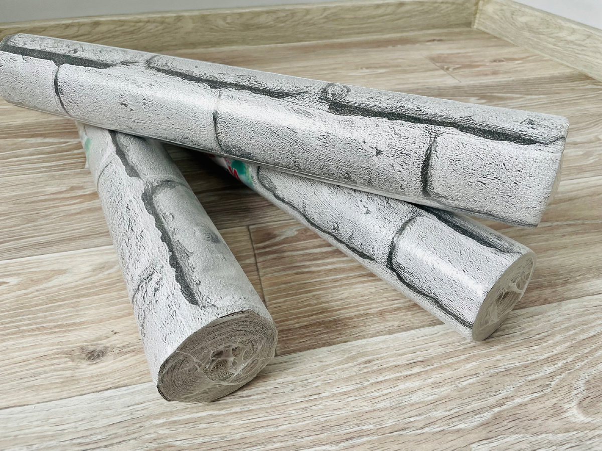 И поэтому я выбрала на ВБ недорогие по цене, но подходящие мне по рисунку обои с кирпичиками. Я подумала, что такой объемный рисунок с тиснением поможет визуально скрыть неровности на стенах.