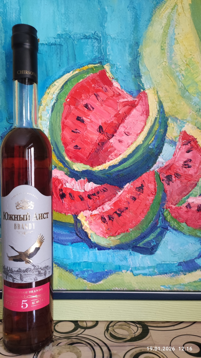 Продолжаем знакомиться с бренди разных стран. Очередной обзор от моего друга Александра Соболева (текст автора). Герой сегодняшнего обзора - Бренди Южный Аист 5. Всех приглашаю в мой Телеграмм канал и Max 😊 На развитие канала. Ни в коем случае мои отзывы не претендуют на безапелляционную объективность. Это только мое личное мнение о конкретном напитке, а оценка выражает только мое отношение к нему. Всем привет! В далёком уже 2023, я уже пробовал этот бренди, который присылал мне несравненный Сергей Измалков. И тогда рванула атомная бомба: какая-то ординарка набрала у меня 90 баллов! Невероятно. Не знаю, какая тогда меня муха укусила. Ибо это просто нереально! Тем не менее, увидя сие произведение молдавского искусства в единственном Магните Экстра города, я прикупил пару бутылок (по 600р), и благополучно про них забыл. Правда, был случай, когда тот же Сергей прислал мне пузырёчек «втемную», который я продегустировал, и дал где-то 80 с копейками. Это и был мой знакомый. Так каков же реа
