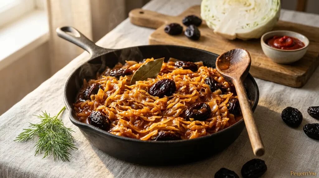 Тушёная капуста с черносливом, которая не превращается в кашу