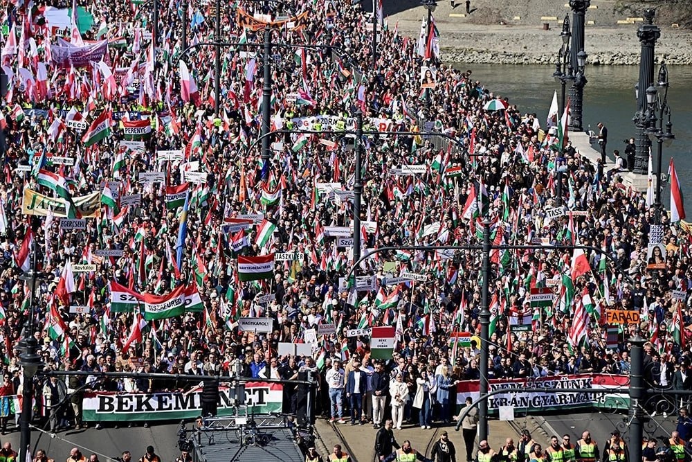 «Хватит кормить Украину»: десятки тысяч человек вышли с лозунгами на «Марш мира» в Будапеште