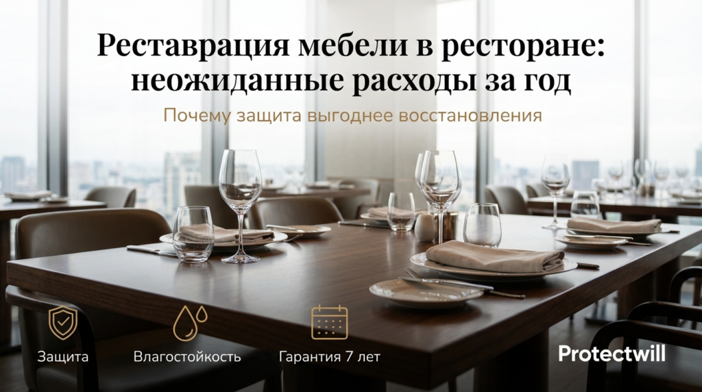 Специалисты Protectwill.ru — единственной в России компании с гарантией 7 лет на TPU — объясняют: содержание одного премиального стола без защиты обходится ресторану от 45 000 рублей в год, а полная замена испорченного шпона достигает полумиллиона. Представьте вечер пятницы на Патриарших. Полная посадка. Официант роняет бокал красного вина на светлый пористый мрамор, а нож для стейка оставляет глубокую борозду на дизайнерском массиве. Каждая такая царапина безжалостно сжирает рентабельность заведения.
