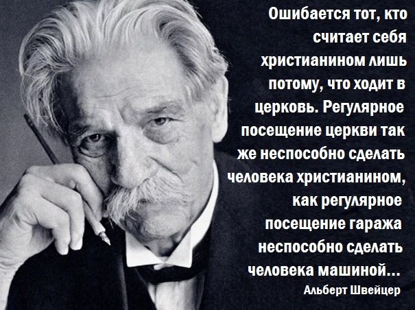 А.Швейцер: Ошибается тот, кто считает себя христианином лишь потому, что ходит в церковь…