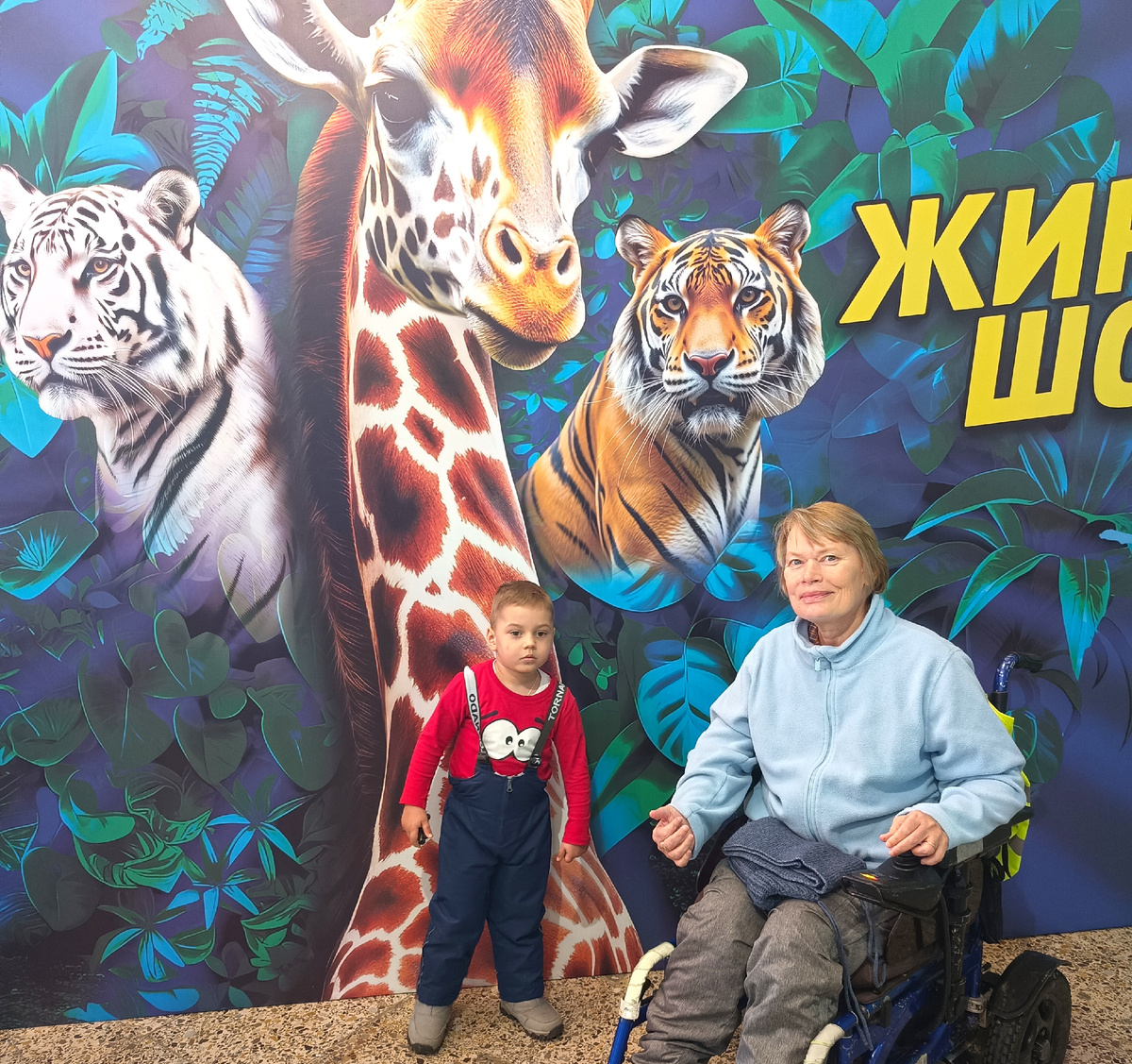14 марта сходили с внуком в цирк. Жираф шоу. В этот раз пришлось купить Диме билет. Вырос уже, чтобы бесплатно ходить. 1500руб. заплатила. Народу много, все места заняты. Меня в этот раз на второй этаж поднимать не стали, поставили на коляске на входе. Так что видно было все отлично. Артисты все возле меня выходили и заходили. Дима и мой друг сидели на 8 ряду, но видно было неплохо там. Первый номер -это выступление жонглера со шляпами. Я его уже видела в других программах цирковых. После него выступили воздушные акробаты, колумбийские козочки, девушка с обручами. 30 обручей крутила!!! Клоун после каждого артиста выходил. Довольно интересные у него были тоже номера. Один номер понравился с веником и палками. Я поначалу подумала что веник прикреплён какими то лесками, а оказалось что нет, он просто так ловко им управлял. С залом много взаимодействовал, и на арену приглашал зрителей. После был номер с обезьянками, вроде дрессировщик тот же что и шляпами жонглировал. Ну или