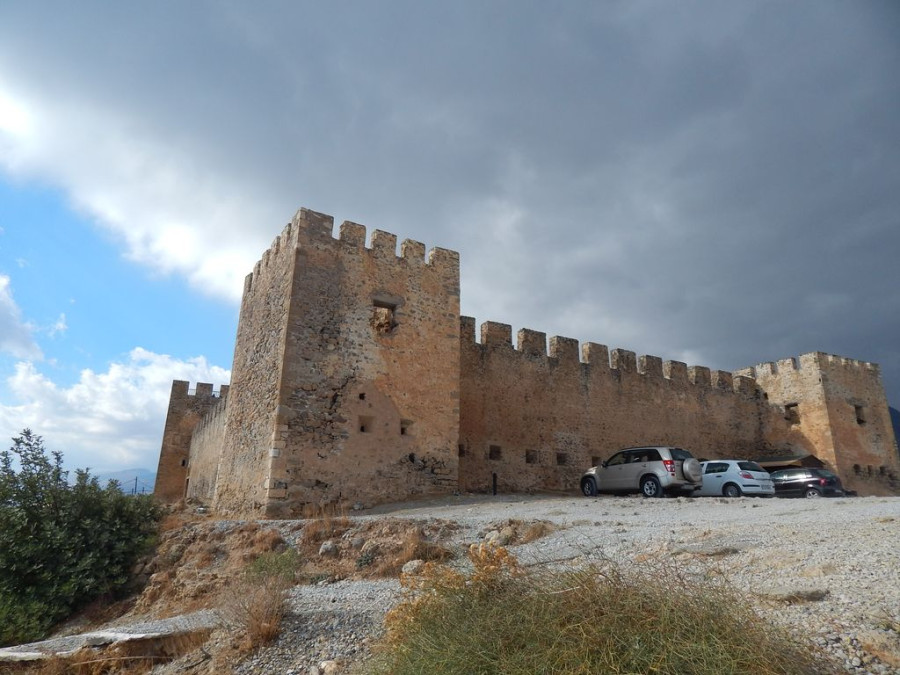 Франгокастелло. А вот это действительно интересно. При византийцах и венецианцах вокруг острова пошаливали пираты. Венецианцы решили построить прибрежную крепость и навести порядок на свеже захваченном приобретённом острове. Греки в породах иностранцев не разбирались и всех подряд называли «франки», крепость – Франгокастелло, крепость франков. А так как дело было в 1371—1374 годах, огнестрела на