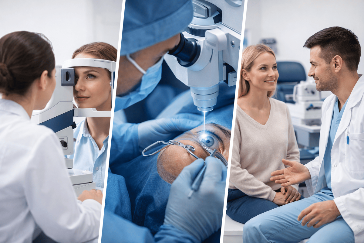 Консультация включает комплексное обследование зрения. Обычно выполняется измерение толщины роговицы, её топография, проверка стабильности рефракции и оценка слёзной плёнки. Врач изучает медицинскую историю пациента и исключает возможные противопоказания. После диагностики специалист объясняет особенности различных методик, прогнозирует результат и даёт рекомендации по подготовке к операции.