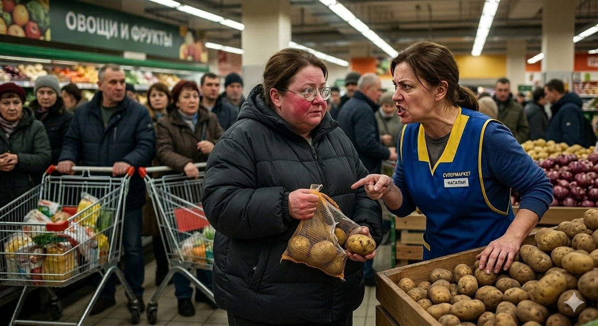 — Для этого есть картошка на развес! — отрезала Наталья, продолжая кричать. — Встанут тут в самый поток, перебирают по полчаса, еще и товар портят! Складывайте обратно и забирайте эту сетку, никто её после вас теперь не купит!