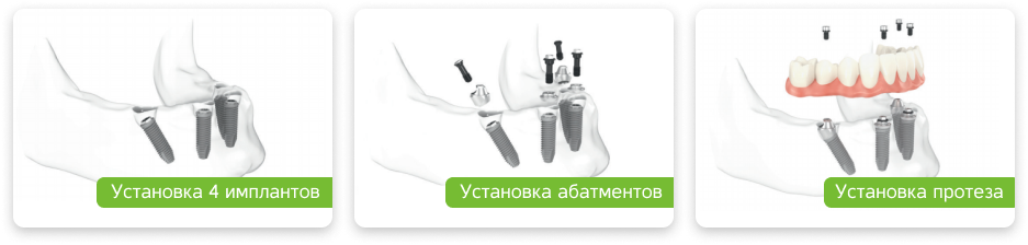 Здесь важно понимать, что сама протезная конструкция опирается не на слизистую и не на лунки удаленных зубов, а на имплантаты, поэтому привычной для съемных протезов нагрузки на десну в этой ситуации нет.