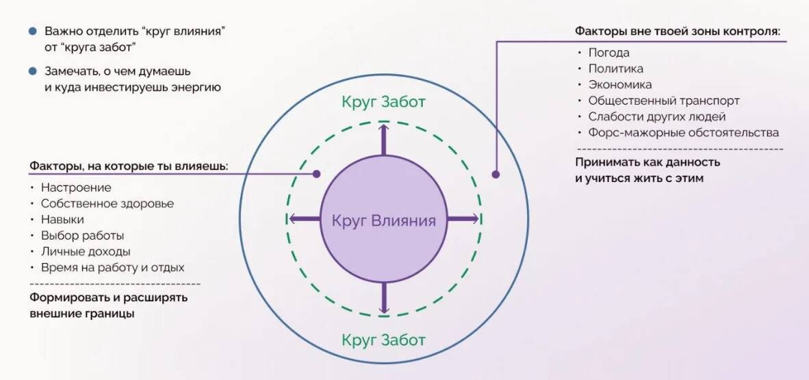 ? После расшатывающих событий 2022–2023 годов я пришла к четкому разделению своей реальности на две зоны: 1. Круг забот (Мир таков, какой он есть) Я перестала тратить силы на попытки изменить то, что мне неподвластно. Почему Америка делает то, что делает? Почему есть брошенные собаки и пожилые одинокие люди? Иди и помоги кому сможешь, неубиваясь об это. Если я не могу на это повлиять, я принимаю это как данность. Без иллюзий и лишних споров с реальностью. 2. Круг влияния (Здесь я действую) Я сосредоточилась исключительно на том, что зависит лично от меня (качество моей работы; отношения с домашними и просто с людьми; забота о здоровье , спорт и ТД) Но важно понимать: концентрация на своих действиях - это не гарантия результата. Это гарантия качества моей жизни. Моя личная формула устойчивости сегодня: • Качество и регулярность: Я прикладываю максимум усилий в тех точках, где я могу что-то изменить. • Чистая совесть: Мой единственный критерий — понимание, что я сделала всё, что