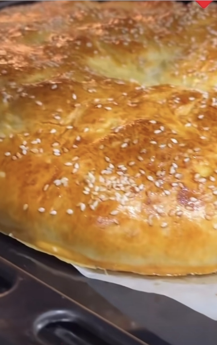 Теперь отправляем пирог в разогретую духовку и выпекаем до красивой румяной корочки. 🥧✨