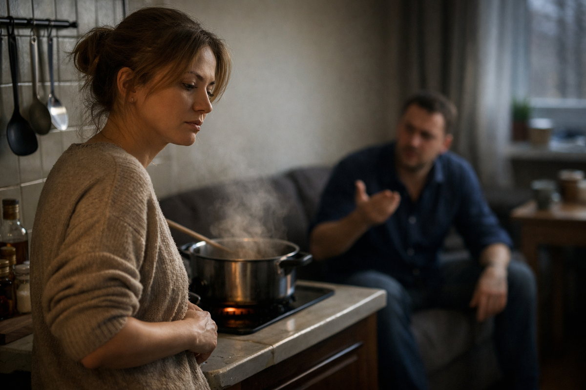 Я стояла у плиты, помешивала суп - тот самый, с фрикадельками, который он просил "почаще". За окном уже темнело в четыре, Антон пришёл с работы злой, с той особой злостью, которая ищет куда выплеснуться, но не на начальника же.