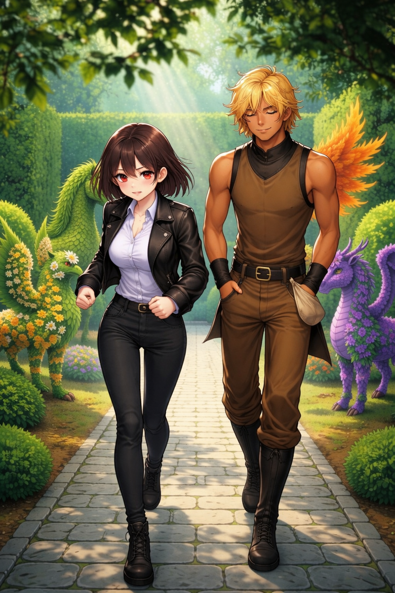 Девушка развернулась и зашагала к воротам с удвоенной скоростью. Эльмир почесал затылок, продолжая изучать её удаляющуюся спину, а затем всё же двинулся следом. Впрочем, догнать её не составило труда - уже через мгновение он шёл перед ней, спиной вперёд, явно намереваясь выяснить причину такой спешки.