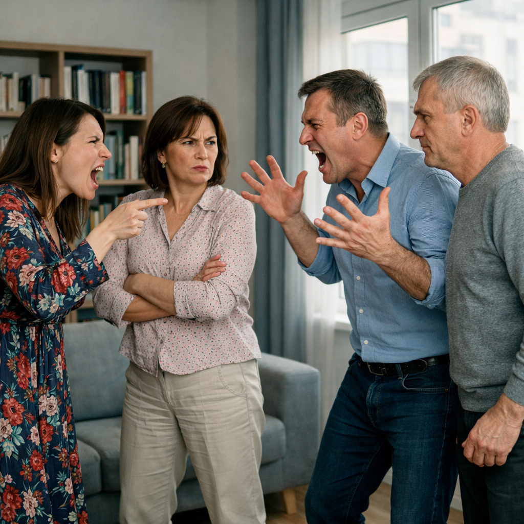 Андрей стоял у вешалки, ещё в куртке, с пакетом из магазина в руке. Он только вошёл — буквально тридцать секунд назад, — а жена уже стояла перед ним, и в глазах у неё горело такое, что он сразу понял: что-то случилось. Что-то серьёзное.