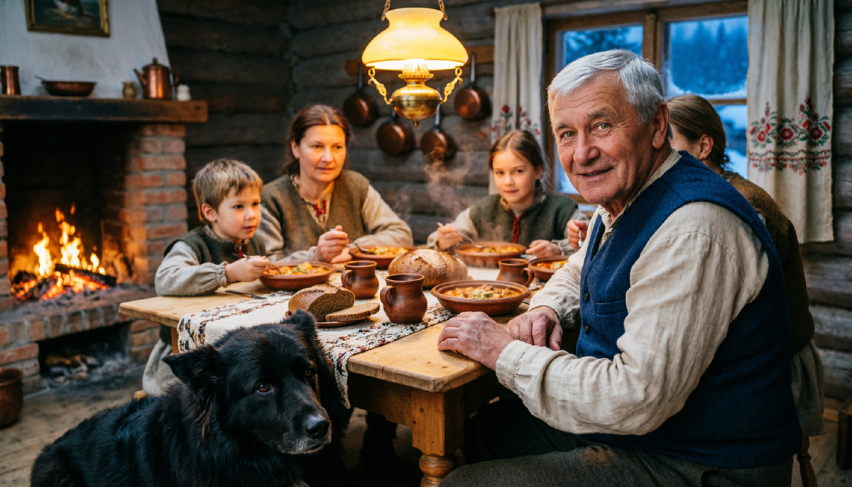 Вечером они сидели за большим столом. Жена Сергея, Елена, накрыла ужин. Пахло жареной картошкой и мясом.