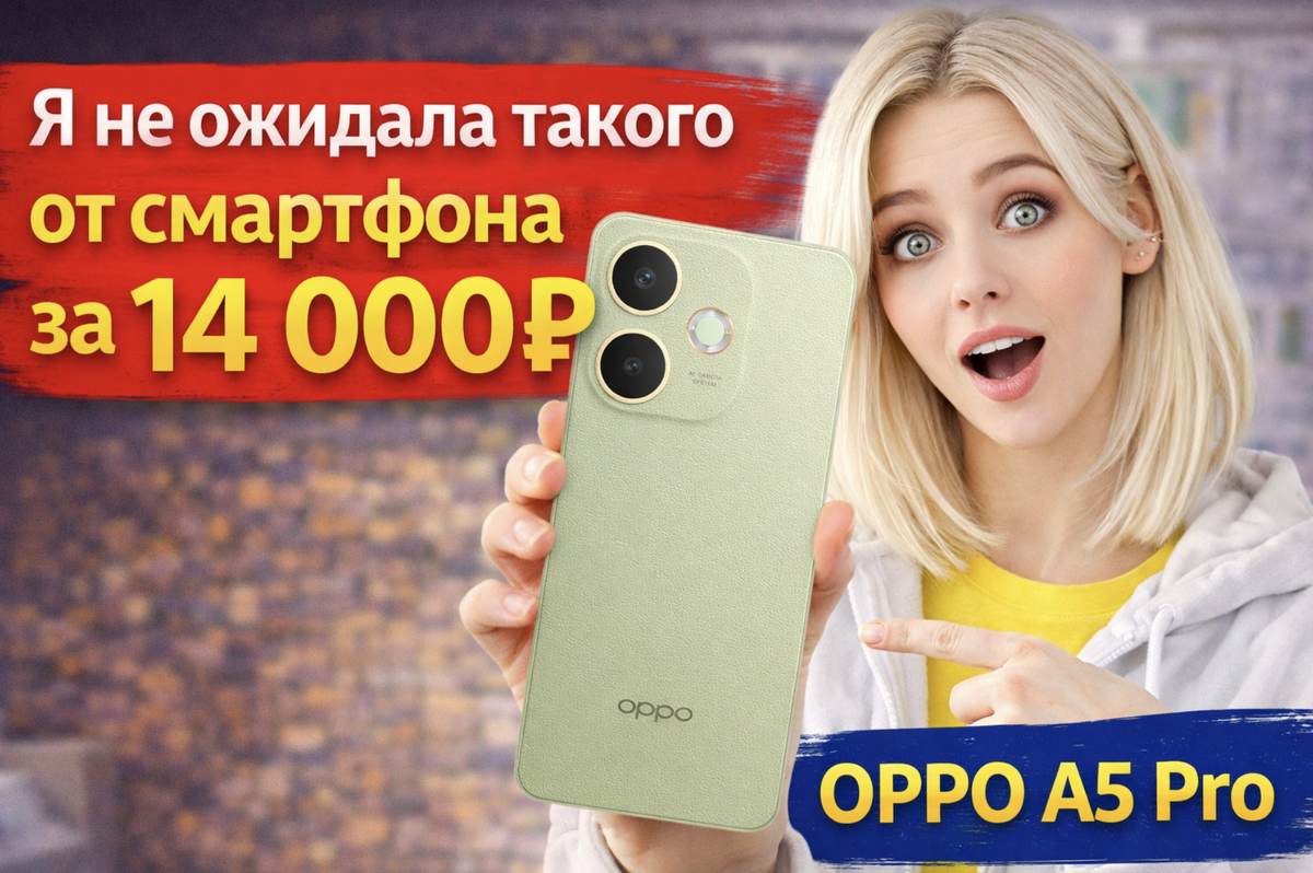 Я часто смотрю технику со скидками и обычно не жду ничего особенного от смартфонов дешевле 15 тысяч рублей. Честно говоря, чаще всего такие телефоны: Но недавно я наткнулась на OPPO A5 Pro, и сначала подумала: «Неужели он правда стоит всего около 14 000 ₽?» Сейчас этот смартфон можно найти примерно за: 💰 13 667 ₽