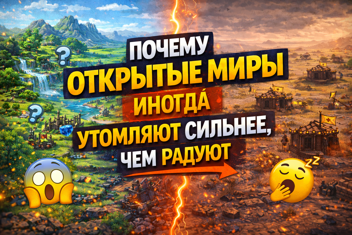 Когда разработчики анонсируют новую игру с огромным открытым миром, игроки обычно радуются. Огромная карта, свобода действий, десятки часов исследования — всё это звучит как идеальная формула для приключения. Но в последние годы всё чаще можно услышать от игроков одну и ту же фразу: «Мир огромный… но делать в нём нечего». Парадокс открытых миров заключается в том, что чем больше становится карта, тем сложнее сделать её действительно интересной. Иногда огромные игровые пространства превращаются в красивую, но пустую декорацию. Именно поэтому многие современные проекты с открытым миром начинают утомлять игроков быстрее, чем радовать. Раньше открытые миры казались настоящим чудом. Игроки могли свободно путешествовать, исследовать города и находить секреты. Но сегодня огромные карты стали стандартом индустрии. Проблема в том, что заполнить такие миры интересным контентом невероятно сложно. В результате разработчики часто используют одинаковую формулу: В начале игры это кажется интересным.