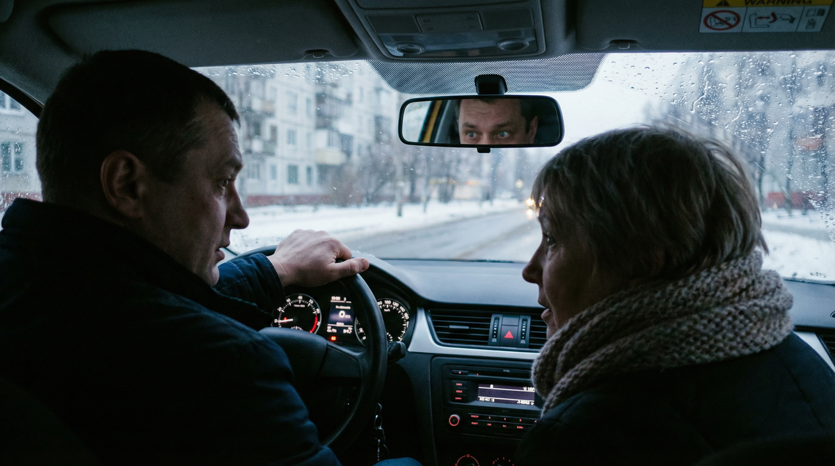 Она села на заднее сиденье, как обычно. Шарф петлёй на одну сторону. Сумка на коленях. Но лицо другое. Собранное. Будто она готовилась к этому разговору очень долго.