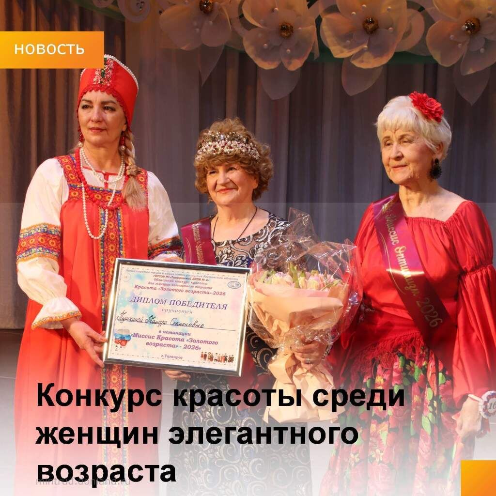 После завершения первого отборочного этапа, в котором соревновались 38 участниц старше 65 лет, являющихся получателями социальных услуг. В финале конкурса 20 конкурсанток боролись за звание «Миссис Золотой возраст-2026. Об этом сообщается в соцсети регионального Минтруда vk.com. Тема конкурса «Цветок Единства» была посвящена Году единства народов России. Женщины демонстрировали культурное богатство народов через свои выступления и творческие номера, а также делились кулинарными умениями. Завершился финал эффектным дефиле в национальной одежде. В итоге Тамара Семёновна Пушкина из Цимлянского района стала победителем конкурса «Красота «Золотого возраста-2026». Напомним, в прошлом году серебряным призером конкурса «Красота золотого возраста» стала жительница Багаевского района, председатель Совета ветеранов Елена Цырфа. Фото из соцсети регионального Минтруда vk.comми