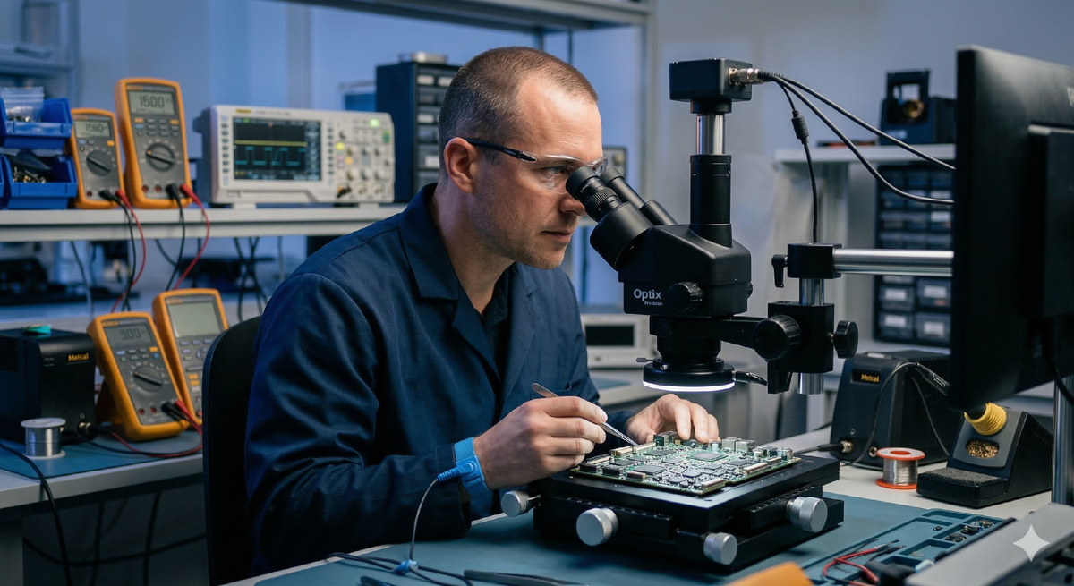 «За что я должен платить 1500 рублей, если вы просто сказали, что ноутбук не починить?» — этот вопрос каждый мастер слышит минимум раз в неделю. В сознании многих клиентов диагностика — это когда мастер открыл крышку, многозначительно хмыкнул и вынес вердикт. Но в реальности, особенно когда мы имеем дело с современной микроэлектроникой, диагностика — это самый сложный, ответственный и интеллектуально емкий этап ремонта. Рассказываю, за что на самом деле вы платите деньги, даже если в итоге отказываетесь от ремонта. Современная материнская плата — это 10–12 слоев текстолита и тысячи компонентов размером с песчинку. Найти, почему на линии питания процессора возникло короткое замыкание в $0.3\ \Omega$ — это не удача. Это часы работы со схемами (boardview), за доступ к которым мастер платит ежемесячную подписку. Это замеры сотен контрольных точек мультиметром и осциллографом. Вы платите за то, что мастер точно знает, где искать «виновника», не превратив вашу плату в решето. Чтобы поставить