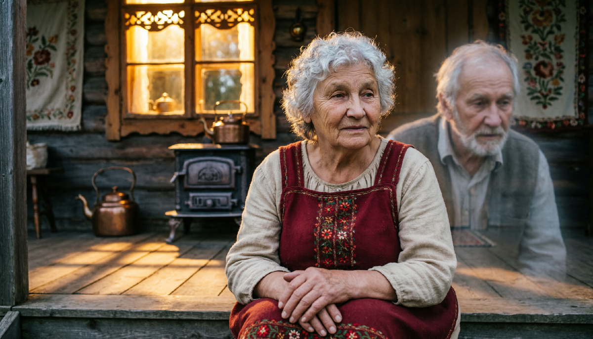 Однажды, через десять лет, Ольга сидела на крыльце. Седые волосы выбились из-под платка. Руки болели. Артём с семьёй жили в пристройке. Дом был полон жизни.