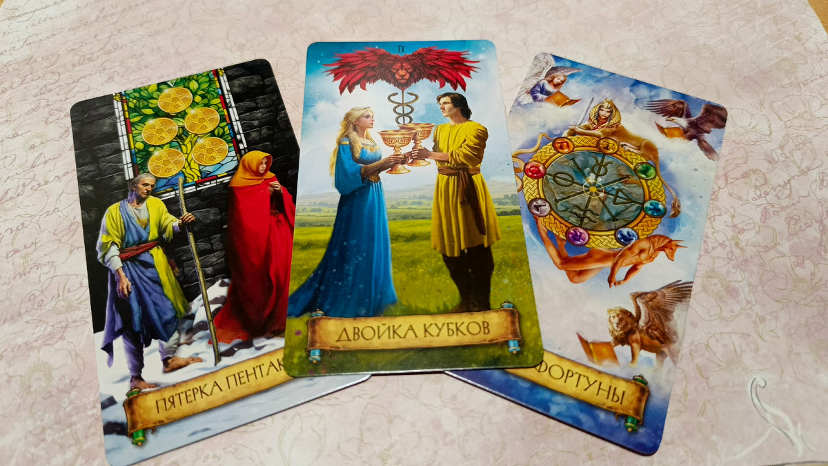 Закрываю глаза, мешаю колоду и вытягиваю карты. Интересный расклад получается, девочки. Поехали!