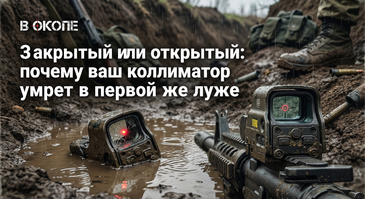 Покупаешь дорогой, красивый открытый коллиматор с широченной линзой. Ставишь его на оружие, едешь на стрельбище в ясный день — всё идеально. Метка четкая, поле зрения огромное. Ощущаешь себя Джоном Уиком.