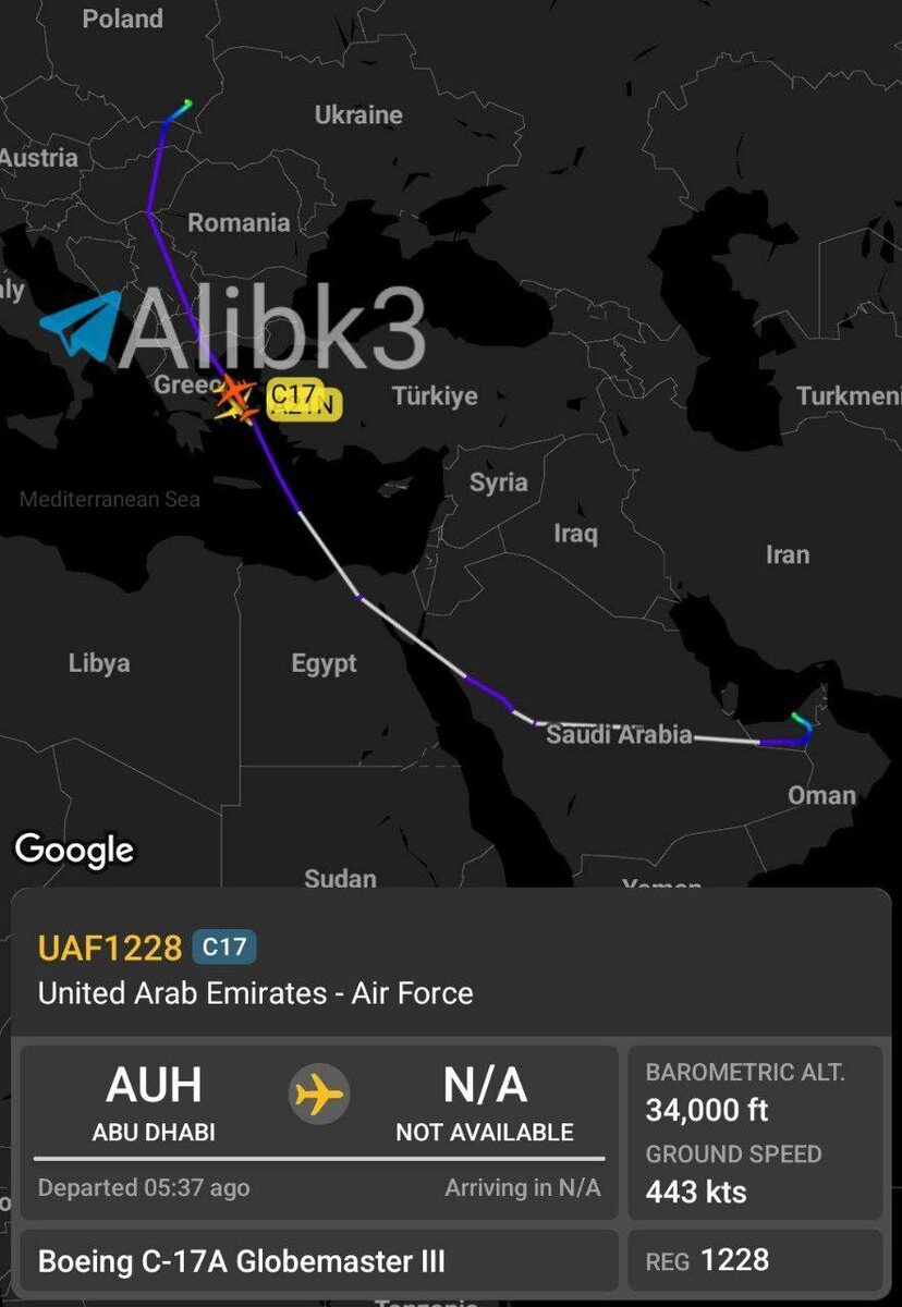 Ma’lum qilinishicha, o‘tgan hafta Qatar va BAAga tegishli C-17A harbiy-transport samolyotlari Ukrainaga harbiy yordamni yuklash bo‘yicha asosiy logistika markazi hisoblangan Polshaning Jeshuv shahriga parvozlarni amalga oshirgan. Bortda havo hujumidan mudofaa tizimlari uchun tutib oluvchi raketalar yoki dronlarga qarshi kurash bo‘yicha mutaxassislar bo‘lgan bo‘lishi mumkin. Avvalroq Zelenskiy Yaqin Sharq davlatlariga yordam berish evaziga pul va texnologiya olishni istayotganini aytgandi. @daryolive