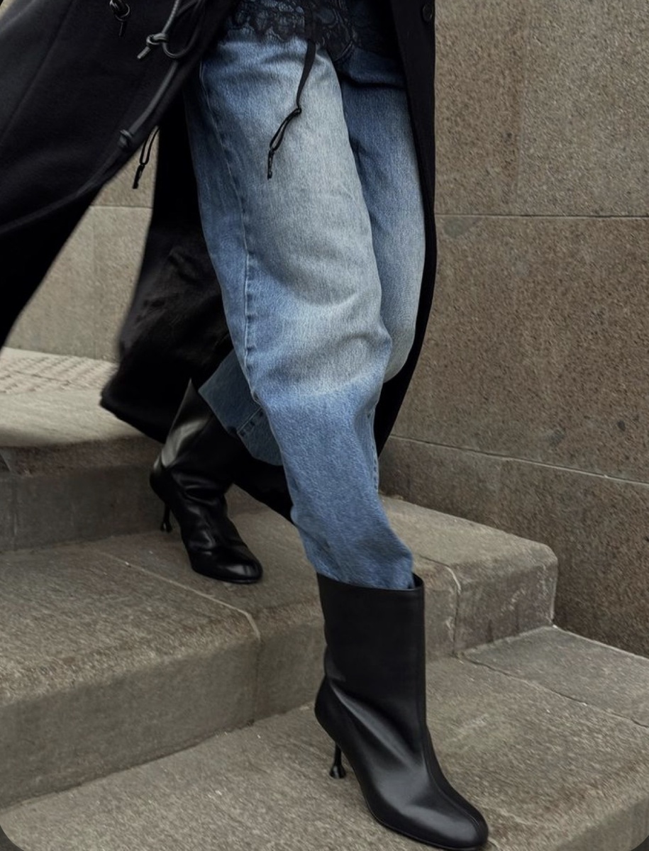 На все непривычное мы часто произносим безопасное "нет". Поэтому на аперитив порция модных образов, чтобы подготовить вас к подборке. Заправить широкие джинсы или брюки в еще более широкое голенище - самый модный стилистический прием весны 2026.