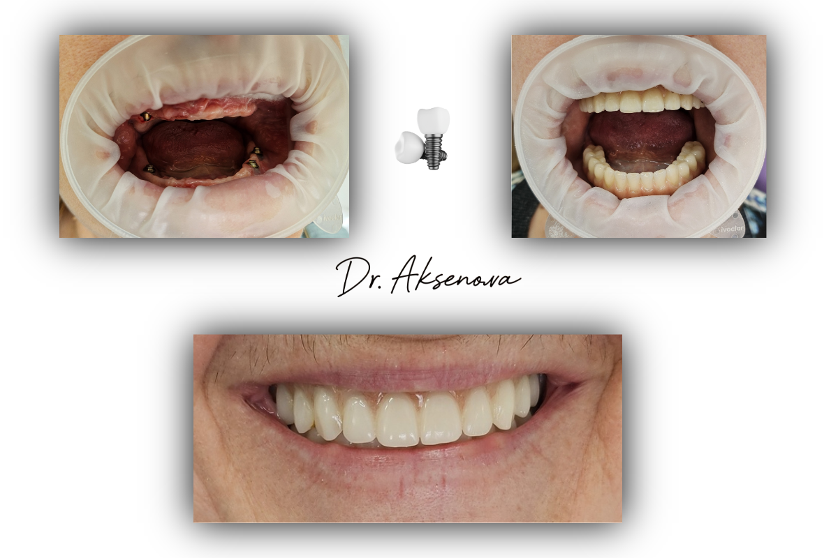 Пациентка наконец-то видит зубы. Да, пока временные. Но это примерка, адаптация, привыкание. И возможность улыбаться в процессе.