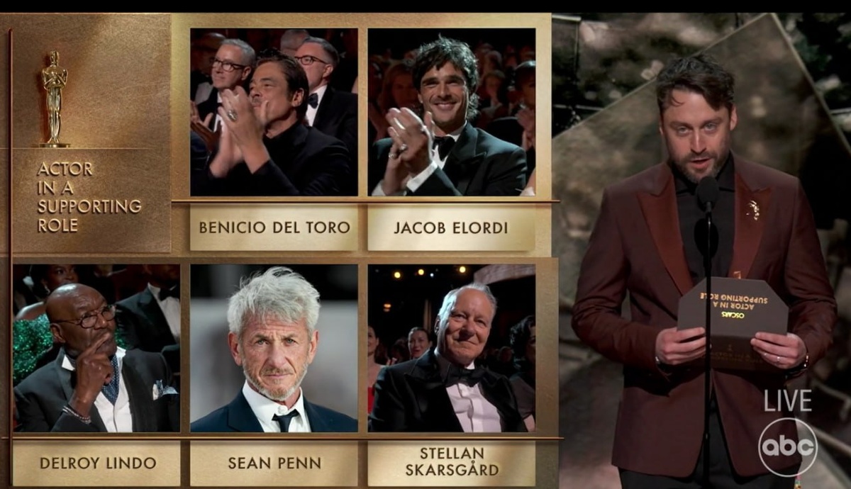 Шон Пенн абсолютно заслуженно забирает "Оскар" за "Лучшую мужскую роль второго плана" (это его третий если что) за отпиленного республиканца в фильме "Битва за битвой". Как истинный панк, актёр не явился на премию😁