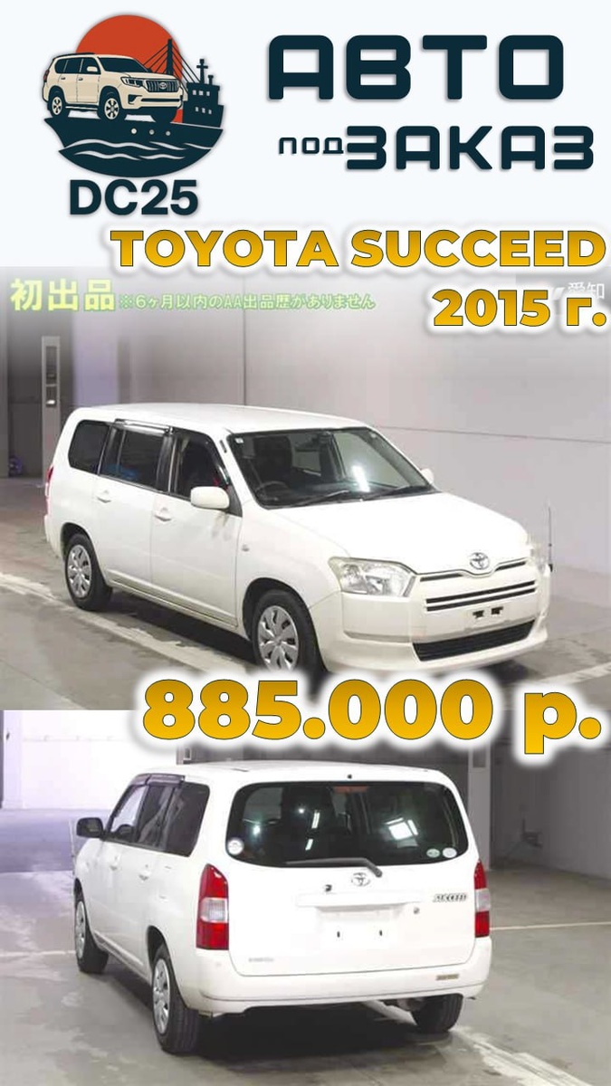 Максимальная комплектация TX Полный электропакет. 🚨 Цена под ключ : 885 000 ₽ до г.Владивосток 📌 Ссылка на Drom📌 ✔️Данный автомобиль находится в Японии, готов к отправке в РФ. ✔️Его можно приобрести по фиксированной цене, без каких либо доп платежей, ✔️Оформление автомобиля сразу на Вас. Первый собственник в эПТС - сразу Вы 💯Без рисков ✅Заключаем договор прописываем номер кузова и цену. ✅В течении 2х недель автомобиль доставляется в РФ. ✅Поэтапная оплата, ✅Invoice - оплата за автомобиль напрямую в Японию. ✅Оплата за пошлину - напрямую в Таможню, ✅Остаток - по готовности. Toyota Succeed - легендарный автомобиль, который ценится за неубиваемую подвеску и невероятную вместительность. Идеален как для личного, так и для коммерческого использования. Комплектация TX (максимальная) ✅ Салон: Комфортные сидения с регулируемыми подголовниками. Заднее сидение — полноценный «диван». ✅ Полный электропакет (все 4 стеклоподъемника). ✅ Оценка 3.5, Пробег: 159 t.km. ✅ Обзор: Видео 360 салона (