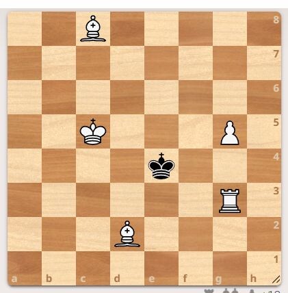 У чёрных только король, в центре доски.