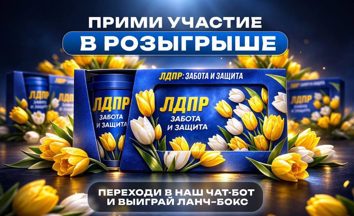 ! Дорогие друзья! В честь весеннего праздника мы запускаем розыгрыш фирменных ланч-боксов ЛДПР. Порадуйте себя или близких стильным и удобным подарком! 💛 Как участвовать: 1. Перейдите в наш чат-бот. 2. Пройдите несколько простых шагов для регистрации. Поздравляем - вы автоматически становитесь участником розыгрыша. Не упустите шанс выиграть и сделать этот праздник ярче! 🎁 #ПетропавловскКамчатский #ЛДПР41 #Камчатка
