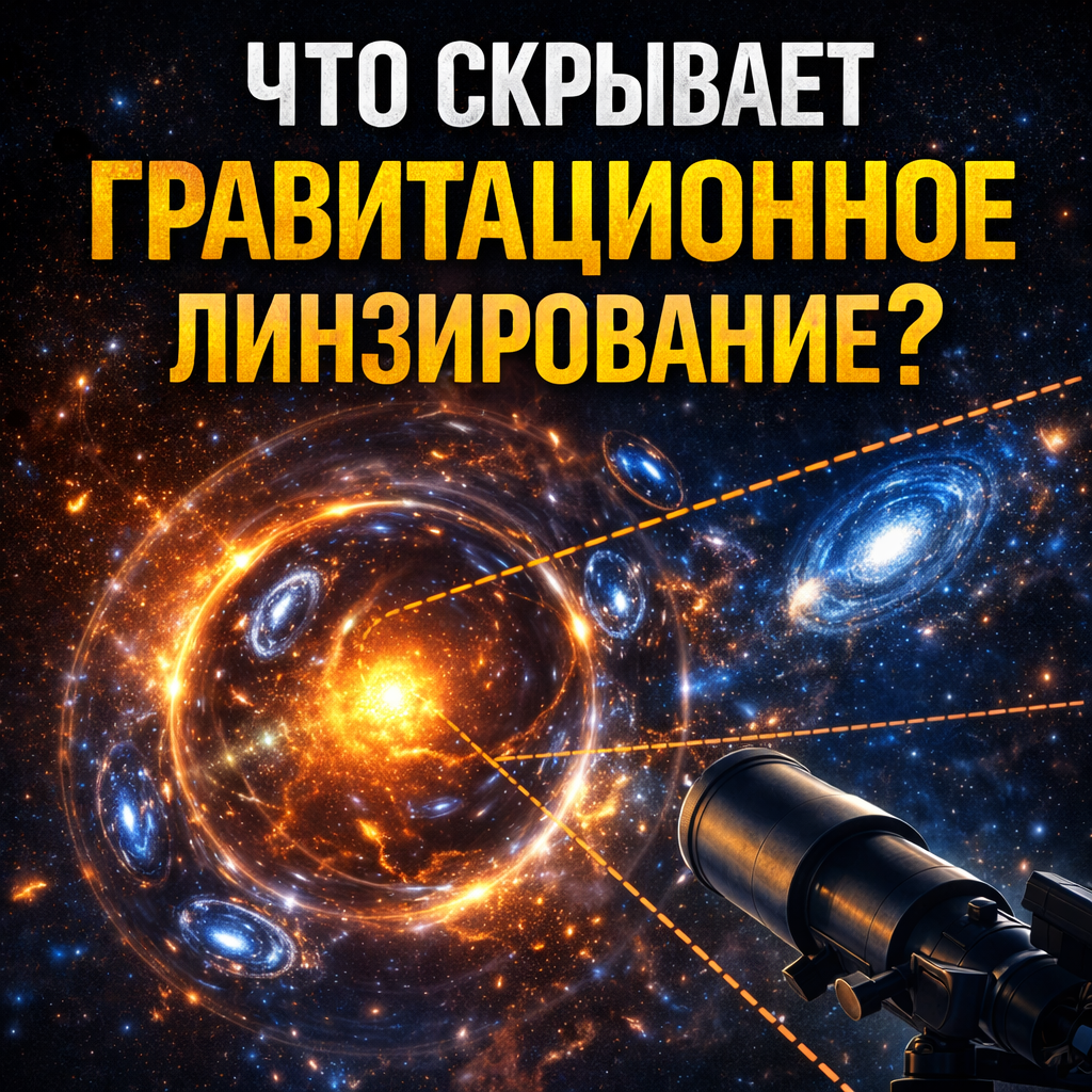 Иногда самые мощные телескопы во Вселенной создаются не людьми. Их формирует сама природа. Один из таких инструментов - гравитационное линзирование. Этот эффект был предсказан еще Альбертом Эйнштейном в общей теории относительности. Согласно ей, масса искривляет пространство и время. Свет, проходящий рядом с массивным объектом, не движется по прямой линии - его траектория изгибается. На первый взгляд звучит абстрактно. Но на практике это явление стало одним из самых мощных инструментов современной астрономии. И самое интересное - гравитационное линзирование помогает увидеть то, что иначе было бы полностью скрыто. Представим три объекта: Если между нами и далекой галактикой находится массивная галактика или скопление галактик, их гравитация искривляет пространство. Свет от далекой галактики начинает изгибаться вокруг этого объекта. В результате наблюдатель может увидеть: Самый известный эффект - кольцо Эйнштейна. Оно возникает, когда источник света, линза и наблюдатель находятся почти н