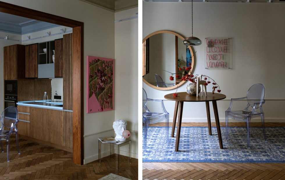 В этом доме жил поэт Муса Джалиль, а сейчас расположена его музей-квартира Место: Казань Тип дома: сталинка Метраж: 58 кв. м Год постройки: 1943 Год реализации: 2025 Комнаты: 2 Cанузлы: 1 Высота потолков: 3,2 м Бюджет: 4 млн рублей Дизайн: Ксения Крылова Стилист: Зарина Салахова Фото: Александр Бурнатов Дизайнер Ксения Крылова создала проект двушки для молодой девушки, директора детской художественной школы. Квартира расположена в знаковом для Казани доме 1940-х годов постройки. Помимо архитектурной ценности как классической «сталинки», здание является частью культурного наследия города — в квартире №28 этого же дома жил поэт Муса Джалиль, и сейчас здесь находится его музей-квартира. Основной задачей стало создание уютного интерьера с сохранением подлинной атмосферы места. Изначальную двустороннюю планировку сохранили без изменений. С одной стороны от коридора расположились гостиная с отдельной кухней, с другой — спальня и санузел. Напротив входной двери обустроили компактную гардеробн