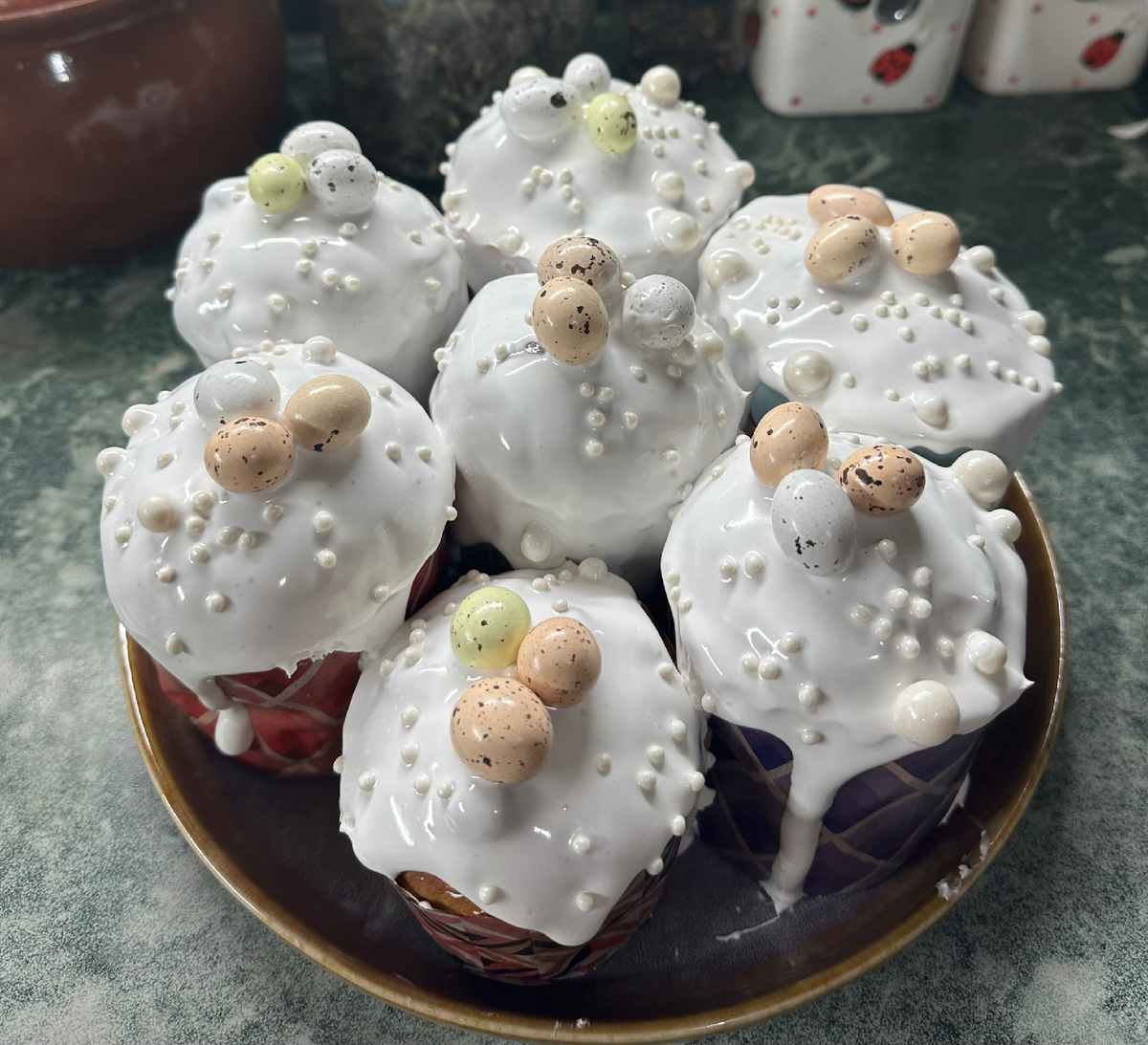 Первые 20 минут выпекания духовку не открывать. Иначе куличи осядут и уже не поднимутся.