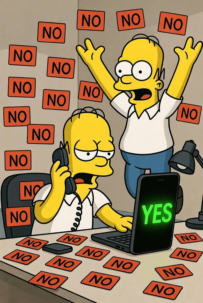 Представьте. Мы уже 10 лет переписываемся в Телеграме. А они его еще и заблокировать хотят, для кого это треть жизни между прочим И знаете, с чего начинается диалог? С моего раздражения. Я пишу, что слишком долго жду решения. Жду ответа. Жду согласия. Жду, когда человек скажет «да». Прошло 10 лет. И я поймал себя на мысли. Все эти годы моя жизнь выглядит примерно так: я что-то предлагаю, придумываю идеи, запускаю проекты, делаю офферы (предложения о сотрудничестве) - и жду. Жду, когда кто-то скажет «да». Интересная математика жизни: Большинство людей говорит «нет». Иногда отвечают «подумаю». Иногда просто молчат. И только иногда звучит «да». Отсюда вопрос. Сколько вообще нужно сделать предложений, чтобы регулярно получать «да»? 10? 100? 1000? А теперь другая мысль. Если каждый день делать 100 разных предложений – инвесторам – партнёрам – клиентам – людям Начнут ли каждый день появляться «да»? Мне кажется, это единственная формула, которая работает. Не ждать правильног