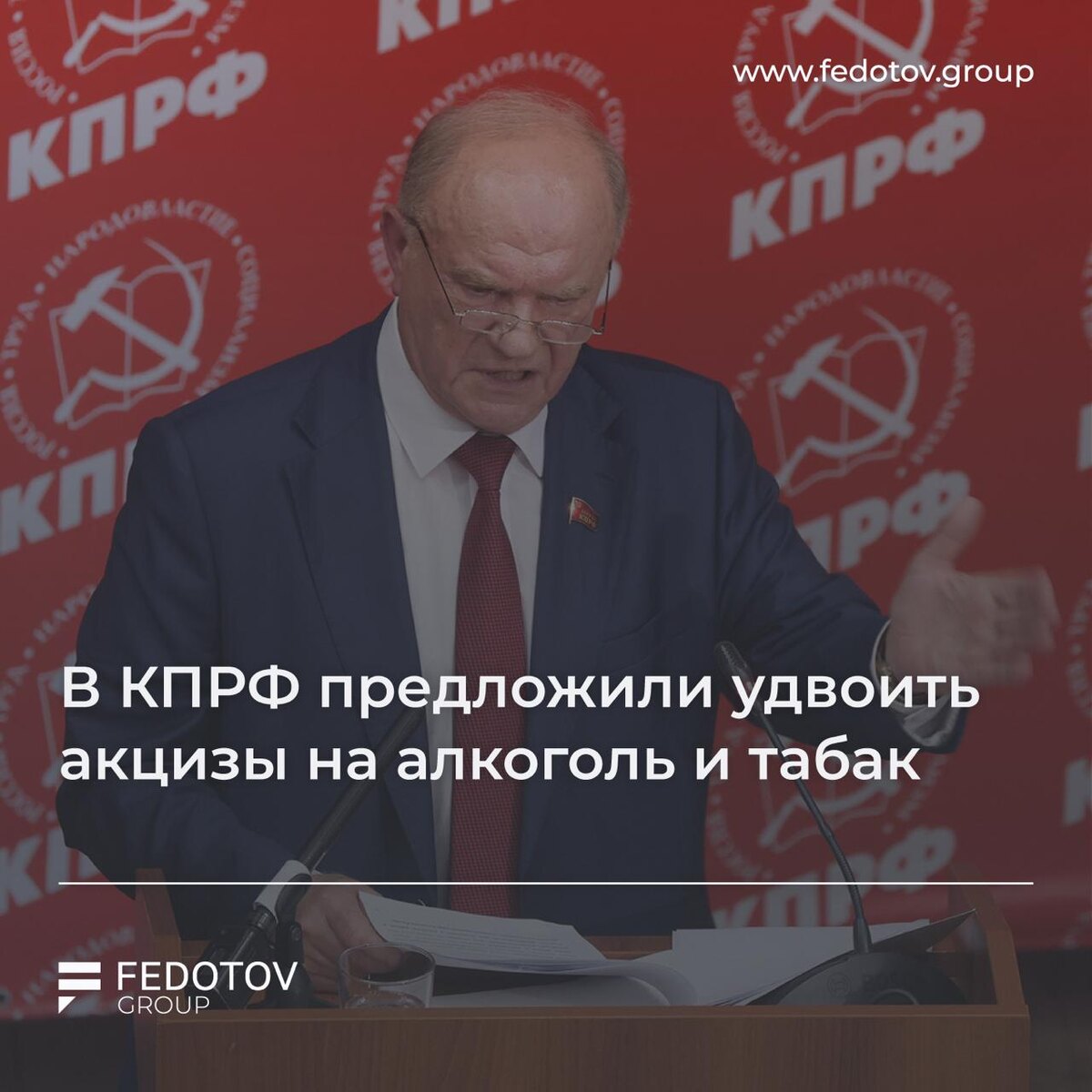 Партия КПРФ выступила с инициативой удвоить акцизы на алкогольную и табачную продукцию. По оценке авторов предложения, такая мера может принести бюджету около 1 трлн рублей дополнительных доходов. Инициатива прозвучала в рамках предложений по изменению налоговой политики. Источник здесь. Попасть в FG Pro | Билеты на Прогрев | Попасть в Retail Expert