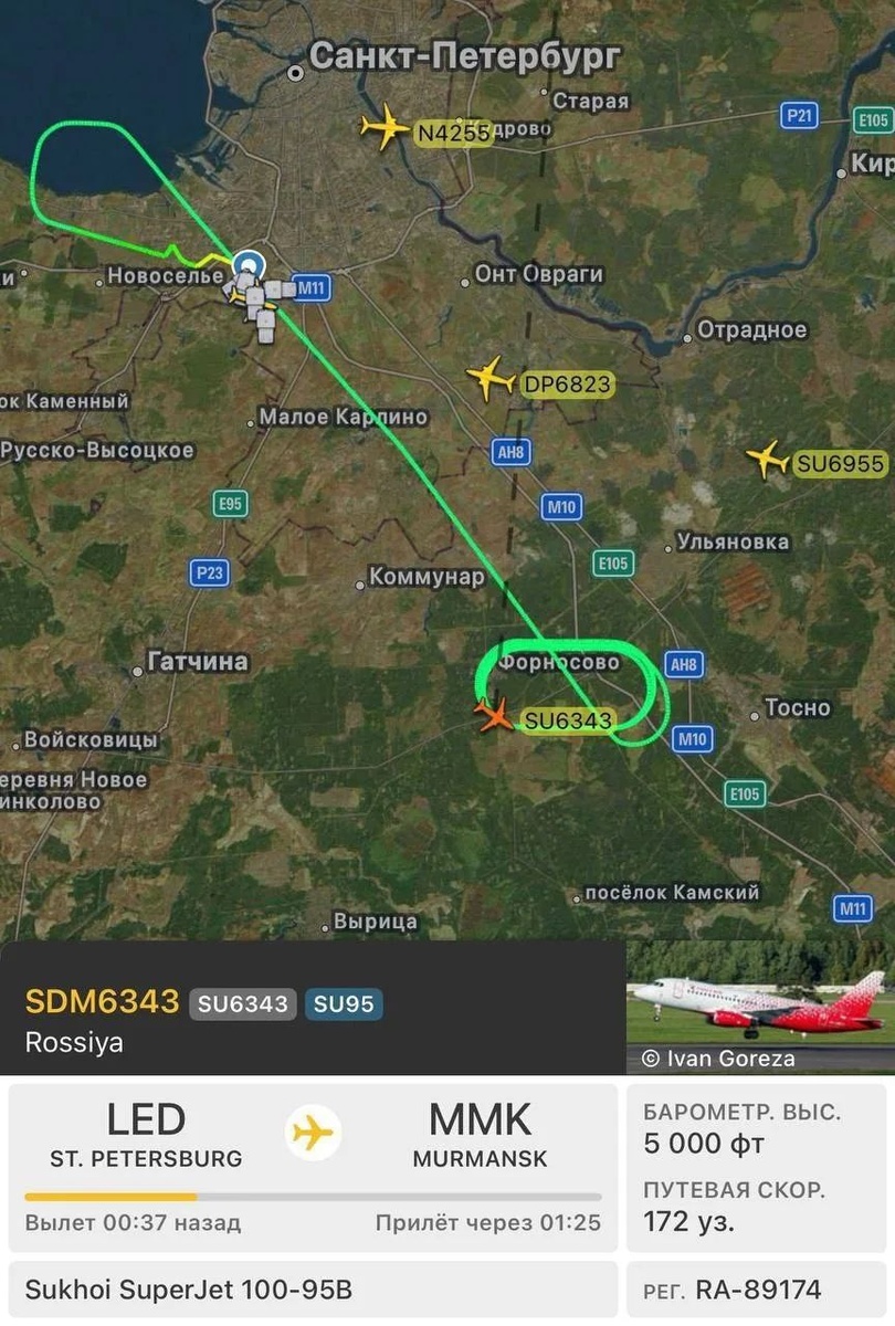 По данным СМИ, рейс вылетел в Мурманск в 09:05, но вынужден кружить в небе над Петербургом из-за технической неисправности. Предварительно, у Суперджета не выпустилась стойка шасси.