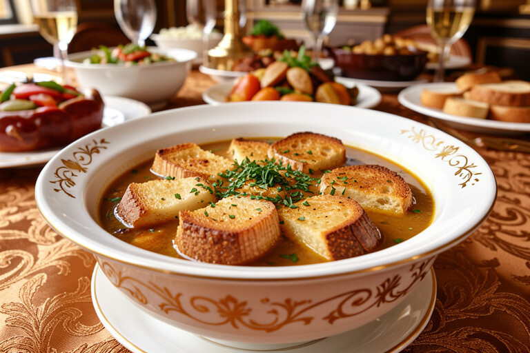 Французский луковый суп классический – это не просто рецепт, это приглашение в мир изысканной французской кухни, где каждый ингредиент играет свою роль в создании гармоничного и глубокого вкуса. От медленной карамелизации лука до золотистой корочки сыра на гренках, каждый этап приготовления этого супа – это акт кулинарного творчества. Подарите себе и своим близким незабываемый гастрономический опыт, приготовив этот легендарный суп, который оставит после себя долгое и приятное послевкусие.