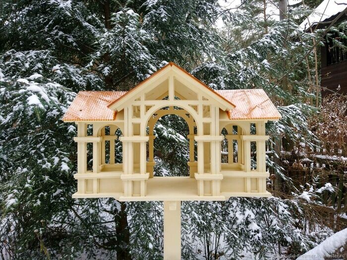 Здравствуйте, дорогие друзья! Сегодня мы с вами поговорим не о крупном рогатом скоте, не о бродячих собаках, и даже не об Ормузском проливе. Речь будет о том, как своими руками скрафтить кормушку для птичек. Заходим в интернет и ищем картинки, из которых будем черпать вдохновение. Мне понравилась вот такая: Делать я ее, конечно же, не буду, поэтому ищем что-нибудь лаконичное и приземленное. Вот такой гениальный шедевр инженерной мысли нашел на Озоне, значит будем реализовывать эту концепцию, но поимпровизируем с размерами. 2. Идем в гараж. Как уже всем давно известно, гараж- самое бесполезное строение на участке, поэтому он должен быть переоборудован в мастерскую. Именно в такой гараж мы и идем. 3. Находим старые обрезки пиломатериалов, берем пилку и нарезаем детальки. Для крыши даже нашелся щит с наклеенным шпоном какой-то роскошной выпендрежной древесины. 4. Насверливаем отверстия. Делаем все сугубо самым дешевым и скотским китайским электроинструментом. Никаких станочков или позерск