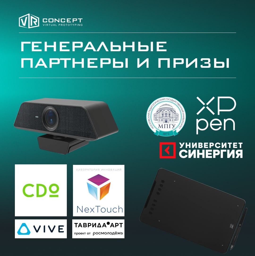 ! Друзья, мы готовы раскрыть имена генеральных партнёров «Цифровые миры: VR-созидатели — 2026» и показать, что ждёт победителей. Спойлер: будет горячо! 🔥 Итак призы от наших генеральных партнеров: 🎨 XPPen (АО «Графические планшеты») — официальный дистрибьютор XPPen в России дарит ультратонкие графические планшеты Deco 01 V3. Идеальный инструмент для 3D-моделлеров и дизайнеров! 🎓 Университет Синергия — выдаёт гранты на обучение или курсы дополнительного образования на IT-факультете. Прокачка скиллов — лучший подарок! 📹 NexTouch — дарит веб-камеры NextMeet WB01 с 4K, матрицей Sony и функцией автокадрирования. Идеально для стримов, презентаций и защиты проектов! 🎭 Таврида.АРТ — предоставит финалистам хакатона возможность отправиться в летнюю школу игровой индустрии! Это уникальная возможность прокачать навыки, найти единомышленников и вдохновиться атмосферой творчества. 😎 VR CONCEPT. Конечно, без подарков от организаторов не останется никто из победителей. 🏛 МПГУ — генераль