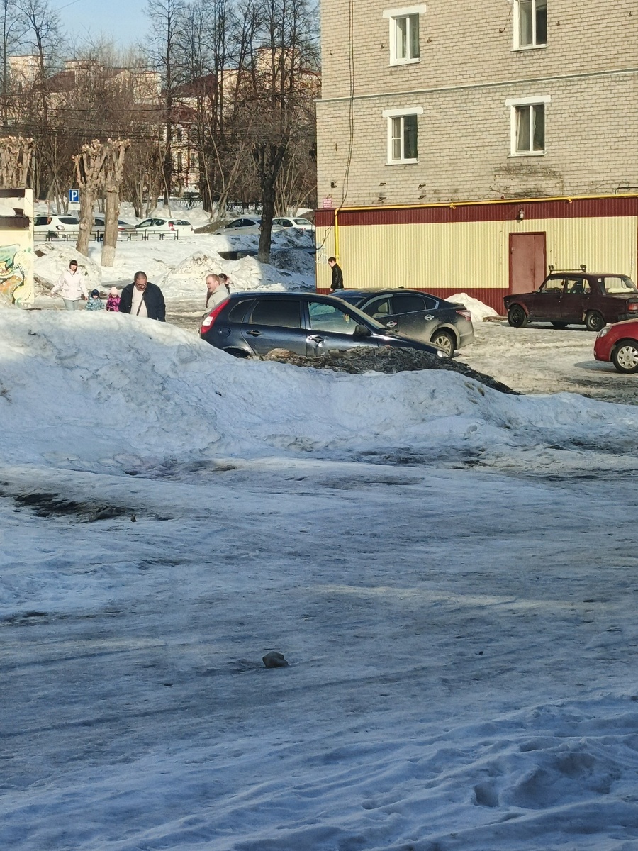 На Кирова 7а, застревают машины, дорога как каша, в пятницу звонили с ЖКХ просили убрать транспорт, в итоге снег не вывезли и объявления сорвали с подъездов, куда смотрит управляющая компания, за всю зиму один раз приехали снег убрать, жильцы сами убирали снег, за что мы платим!!!!