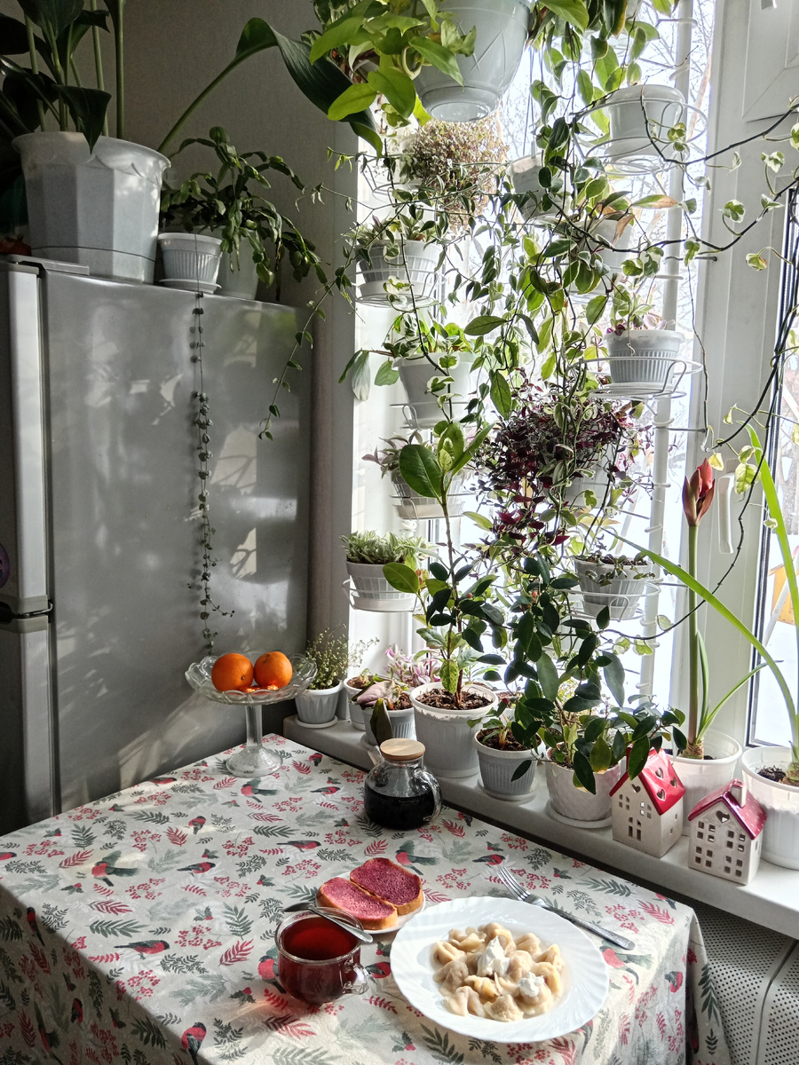 Птичья кормушка ещё со вчерашнего дня полная. Не клюют. Видимо, в другом месте столуются.