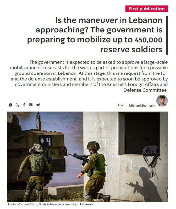 Израиля и оборонного ведомства в рамках подготовки к возможной наземной операции в Ливане, — сообщает Kan News.