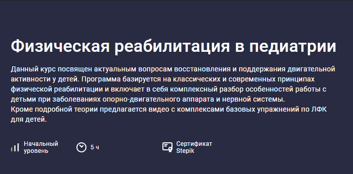 Движение — это жизнь. Особенно для ребенка. Курс по физической реабилитации в педиатрии для врачей, тренеров и родителей. Хотите понимать своего ребенка и помочь ему расти здоровым? Хотите представлений о детской реабилитации, от теории ДЦП до готовых комплексов ЛФК? Курс «Физическая реабилитация в педиатрии» создан не только для медиков. Он будет понятен и полезен родителям, которые хотят заниматься профилактикой или мягко помогать детям с особенностями здоровья. Вы узнаете: ✔️Как учитывать возрастные особенности при выполнении упражнений. ✔️Какие простые, но эффективные комплексы ЛФК можно делать дома (в качестве дополнения к основным занятиям). ✔️Чем отличаются упражнения при ДЦП, сколиозе и нарушениях осанки. ✔️Что такое логопедический массаж и зачем он нужен. Этот курс поможет вам чувствовать себя увереннее, понимать рекомендации специалистов и грамотно помогать ребенку в повседневной жизни. Курс ведет практикующий врач ЛФК и спортивной медицины с 15-летним стажем — Ирина Ве