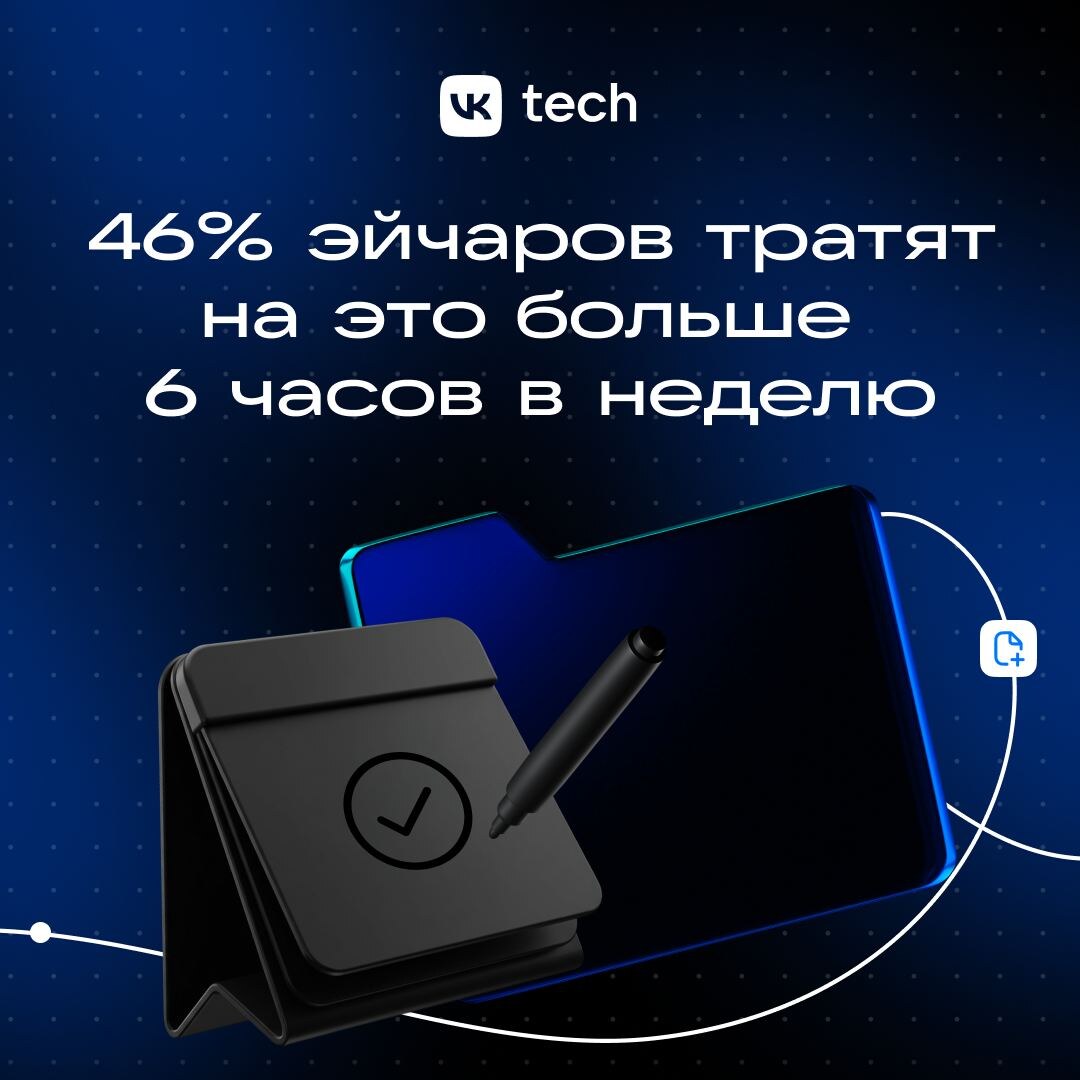 К такому выводу пришли аналитики hh.ru. По их данным, 25% сотрудников проводят более шести часов в неделю за подготовкой неавтоматизированных отчетов, а 38% — за согласованием документов и служебных запросов. Среди представителей кадровых служб нагрузка выше: у 46% эйчаров согласование документов и заявок занимает больше шести часов каждую неделю. 🏋️ Особенно тяжело приходится энергетике и ТЭК, здравоохранению и фармацевтике, муниципальным служащим, а также работникам промышленности. Но есть и хорошая новость: перевод бумаги в цифру ускоряет работу кадровых специалистов и сокращает расходы на кадровый документооборот до 80%. То, что раньше занимало часы и дни, в VK HR Tek решается за минуты.
