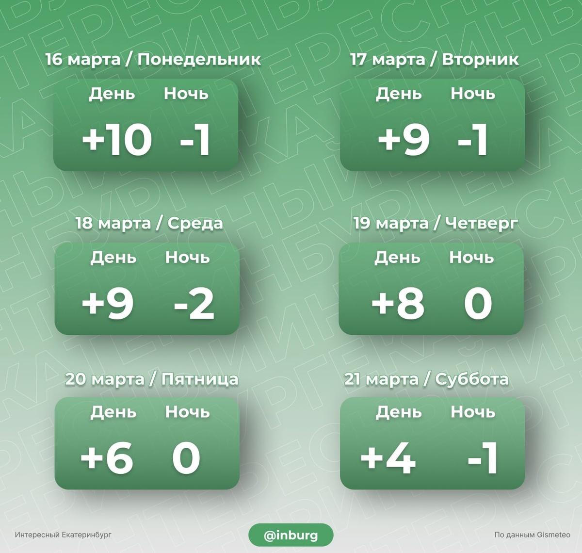 По прогнозам синоптика Алексея Пулина в канале «Погода в Екатеринбурге», теплая погода продержится примерно до середины недели, а днем станет еще теплее. После этого в регион придет более холодный воздух, и температура начнет снижаться. Подробнее в карточке ⬆️