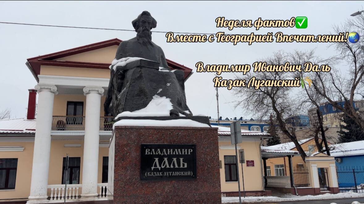 ! География впечатлений запускает "Неделю фактов" !!✔️ Не пропускайте посты, в течение этой недели предлагаем вам рассмотреть биографию и самые интересные факты о Казаке Луганском, Владимире Ивановиче Дале!✍️ Большинство из нас знает Владимира Даля как автора монументального «Толкового словаря живого великорусского языка».📖 Однако за этим строгим образом скрывается жизнь, достойная авантюрного романа: моряк, видевший смерть в лицо; хирург-виртуоз, оперировавший самого Пушкина; военный инженер, взрывавший мосты; и чиновник, боровшийся с коррупцией. Даль был человеком, который доказал: русским человека делает не происхождение, а любовь к родному слову. В течение недели вы будете узнавать о каждом из этих фактов подробнее!) Почему Владимир Даль стал «Казаком Луганским»? 🤔🐎 📍 Место силы: Даль родился в поселке Луганский Завод (ныне — Луганск). Свою малую родину он обожал и считал, что именно там прошло его становление. Когда в 1832 году он издал свои «Русские сказки», на обложке красо