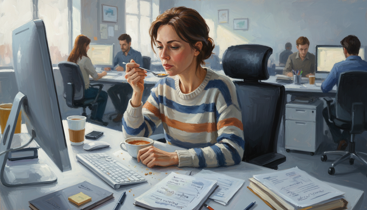 Однажды коллега сделала мне замечание. Я сидела, ела суп, смотрела в экран — и тут: «Ты же не в столовой». Произнесено с такой интонацией, будто я нарушила какой-то негласный кодекс приличий. А ведь я просто обедала. На своём рабочем месте. В промежутке между двумя дедлайнами. С тех пор я думаю об этом чаще, чем стоило бы. И вот к чему пришла: обед за рабочим столом — это не вопрос воспитания. Это вопрос того, как устроена современная работа. И того, что мы почему-то до сих пор притворяемся, будто она устроена иначе. По данным исследований, которые периодически проводят HR-агентства по всему миру, больше половины офисных работников регулярно едят прямо на рабочем месте. Не потому что не умеют себя вести. А потому что у них нет выбора. Или выбор есть, но он выглядит так: либо поешь за компьютером, либо не поешь вообще. Это не жалоба. Это просто факт современной офисной жизни. И всё же тема вызывает удивительно много эмоций. Коллеги морщатся от запаха чужой еды. Руководители говорят про